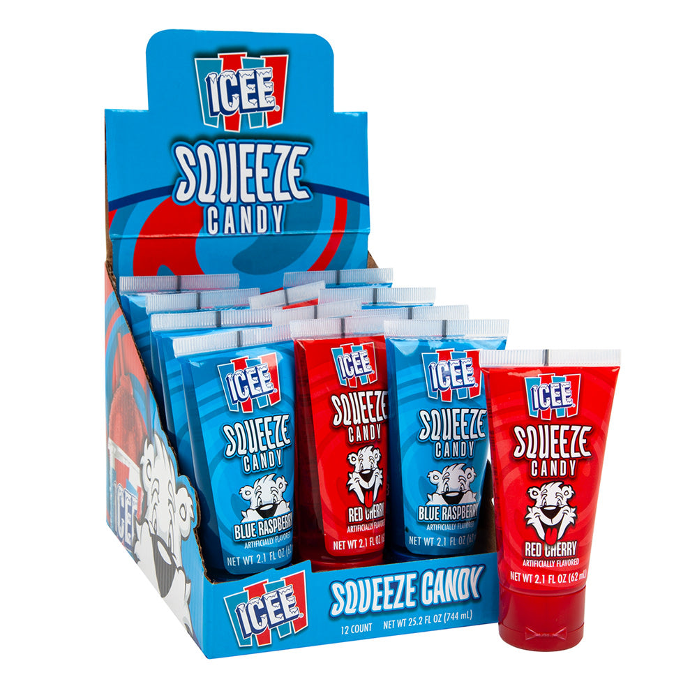 ICEE Squeeze Candy transforms the familiar slushy flavors into portable gel tubes that dispense with a simple squeeze. This counter display box contains 12 tubes featuring authentic ICEE taste in a shelf-stable format.